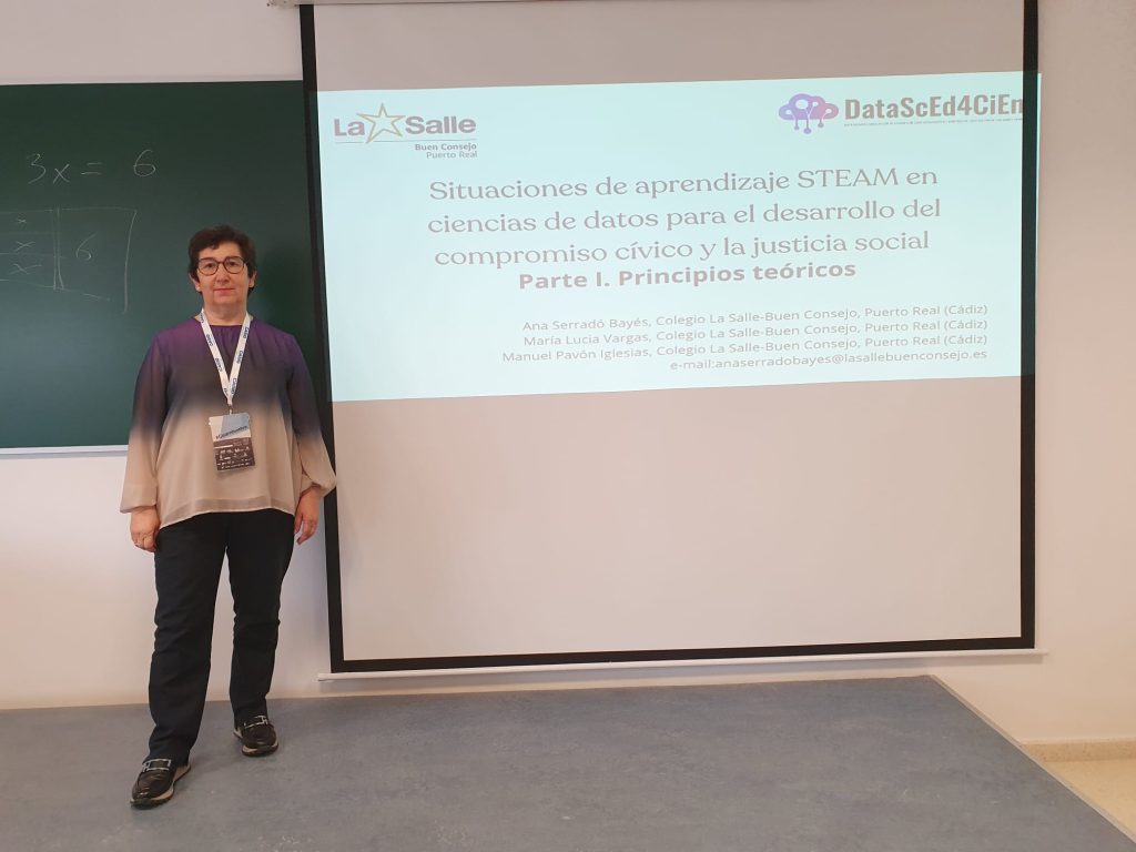 The work was presented by Ana Serradó Bayés, María Lucía Vargas, and Manuel Pavón Iglesias from Colegio La Salle–Buen Consejo in Puerto Real, Cádiz, Spain. The study forms part of the Erasmus+ project “Data Science Education in STEAM for Civic Engagement and Social Justice from the Early Years (DataScEd4CiEn)”, which runs from December 2023 to June 2025.