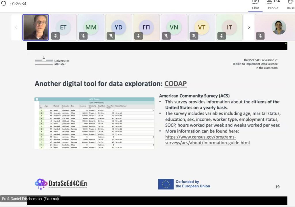 Prof. Daniel Frischemeier led participants through practical approaches to implementing data science in the classroom. A key focus was on the use of CODAP (Common Online Data Analysis Platform) as an accessible tool for data exploration.