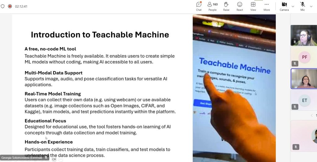 - Dr Yianna Danidou introduced Teachable Machine, demonstrating how simple models can be trained and tested in classroom settings