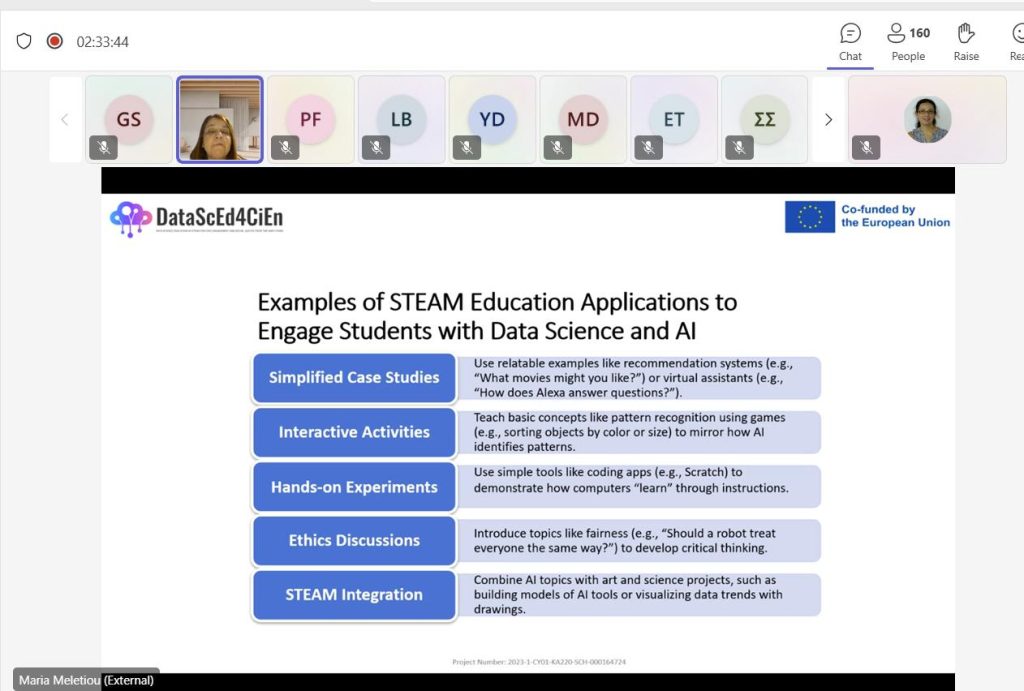 The second session of the Professional Development (PD) programme built on the foundations established in the first meeting, offering participants a hands-on exploration of tools, methodologies, and emerging technologies for teaching data science within STEAM education.